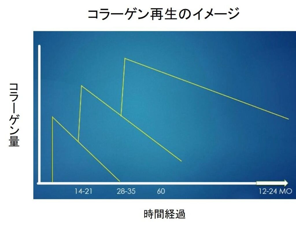 メージがお持ちいただけるでしょうか。ある一定の結果に達した後は、緩やかにその効果が減っていきますので、時々その減った分を継続施術でもとのレベルまで改善すればよいことになります。具体的には2~3週毎に3~5回施行し、その後は3~6か月毎に施術が理想的だと思います。