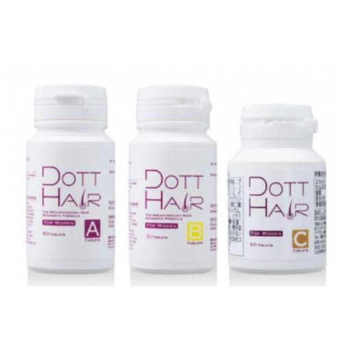 女性専用の脱毛症治療薬Dott Hair(ドットヘア)は、FAGA(女性型脱毛症)に有効とされる2種類の医薬品『ミノキシジル』と『スピロノラクトン』の相乗効果を使用した内服薬と、発毛に必要とされるアミノ酸・ミネラル・ビタミンをバランス良く配合したサプリメントの3点がセットになっている内服薬です。副作用についてもしっかりとご説明し、ご理解・ご納得いただけた患者様に処方しています。