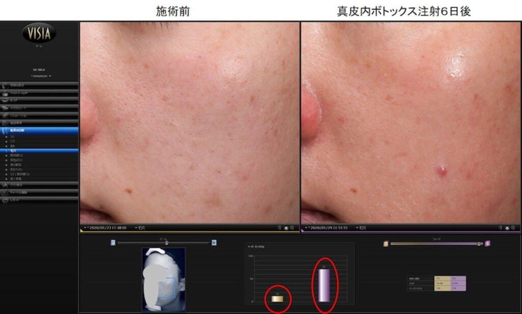 効果は、注入後早くて2~3日後より現れ、2週間程度で安定化します。
