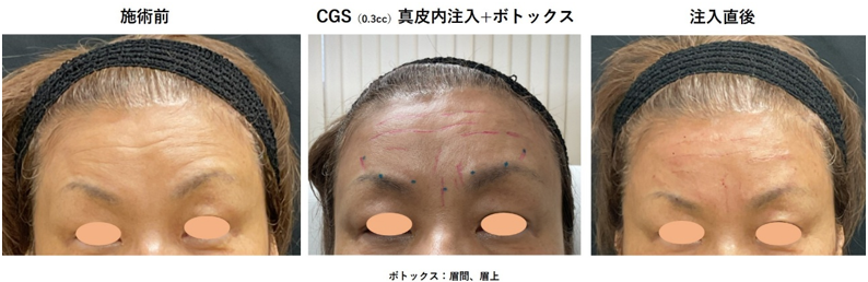 | 治療内容 | CGスタイラー皮内注射(0.3cc)、眉間・眉上ボトックス |