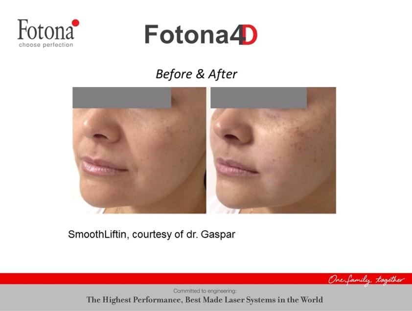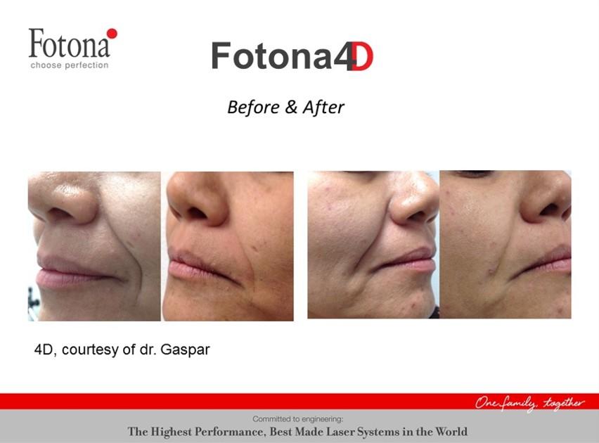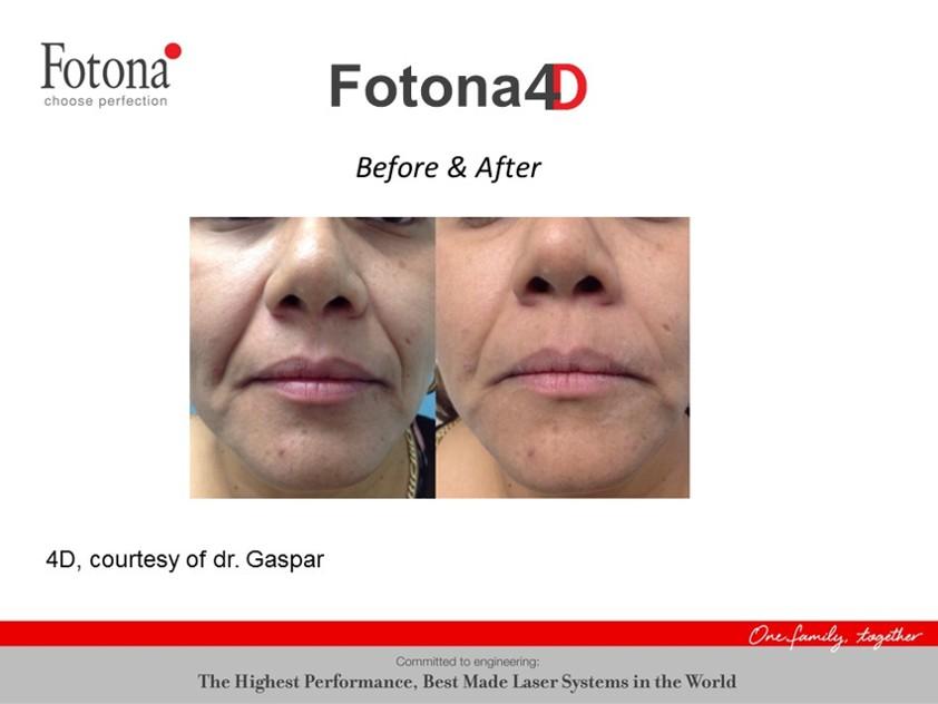 Fotona4Dは、顔の外側(皮膚側)と内側(口腔内)の両方からアプローチする相乗効果のある一連の手技により、顔のすべての組織層の持続的なタイトニングとフィラーなどの注入なしにコラーゲンのボリュームアップを実現する非侵襲性のレーザー治療です。『ベクターリフト』、Tランナーによる『ロボティクスキン』のいずれかを加えると『フォトナ5D』となり、両方を追加すれば『フォトナ6D』となります。