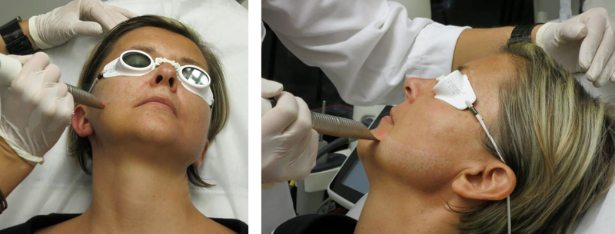 施術者が自らの顔を材料に研究を重ね、効果的な照射方法を追求しました。