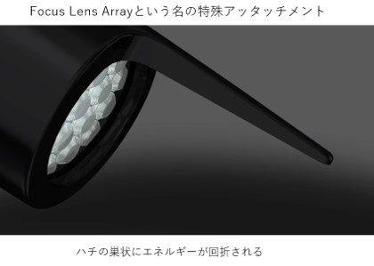 どういうことかと言いますと、下の図のように、ピコシュアのフラクショナル照射用のアタッチメント『Focus Lens Array』を取り付け、フラクショナル照射を行います。