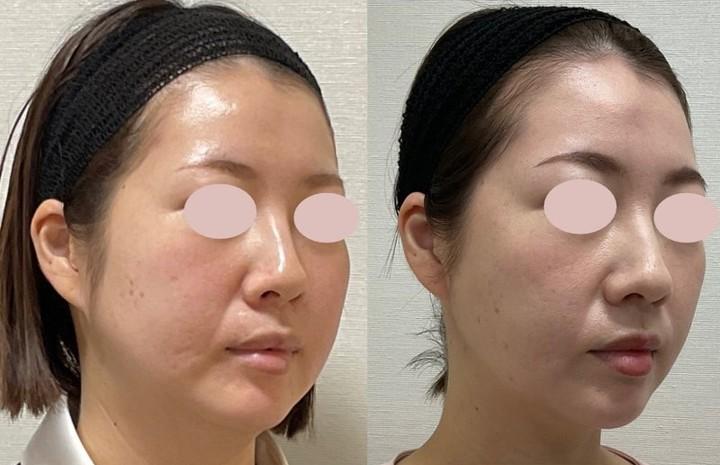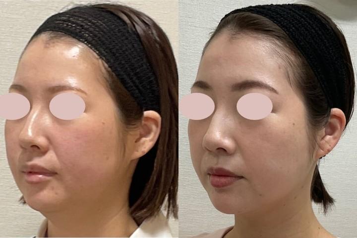 正確性を期すために付け加えると、施術開始後にダイエットも行っているそうで、2Kgは体重が減っているとのことですが、私の経験上、体重が2Kg減ったぐらいでは、こんな小顔にはなりません。ダイエットの影響を差し引いても、施術の効果の高さが出ていると思います。