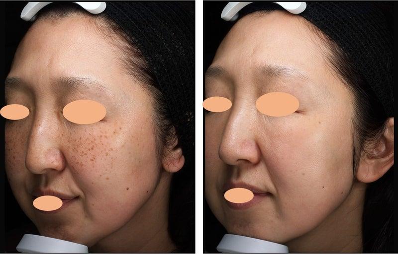 シミやそばかすに対して、1回の施術でも即効性が感じられることが多く、肌のトーンが明るく均一になるといった効果を感じられます。