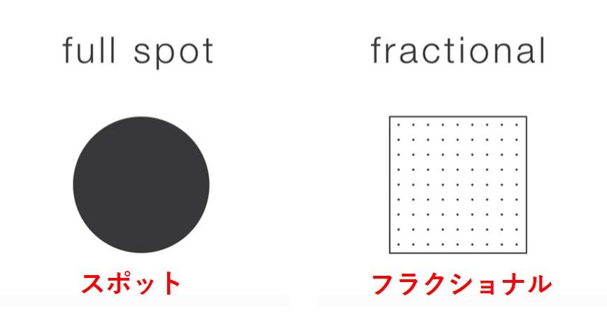 「フラクショナル」とは、レーザーなどの治療エネルギーを「点状」「ドット状」に照射する治療一般のことを指します。