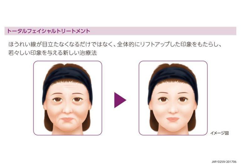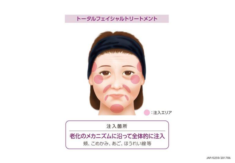 Total Facial Treatmentはヒアルロン酸を全体的に注入することで、局所に注入するよりも自然に仕上がる優れた方法ですが、ヒアルロン酸の使用量が多くなります。局所の法令線に注入する量は少なくても、全体に注入する量はそれなりになります。